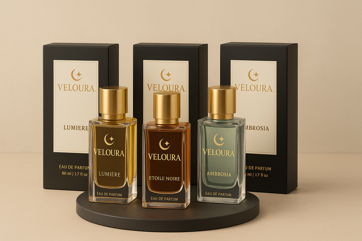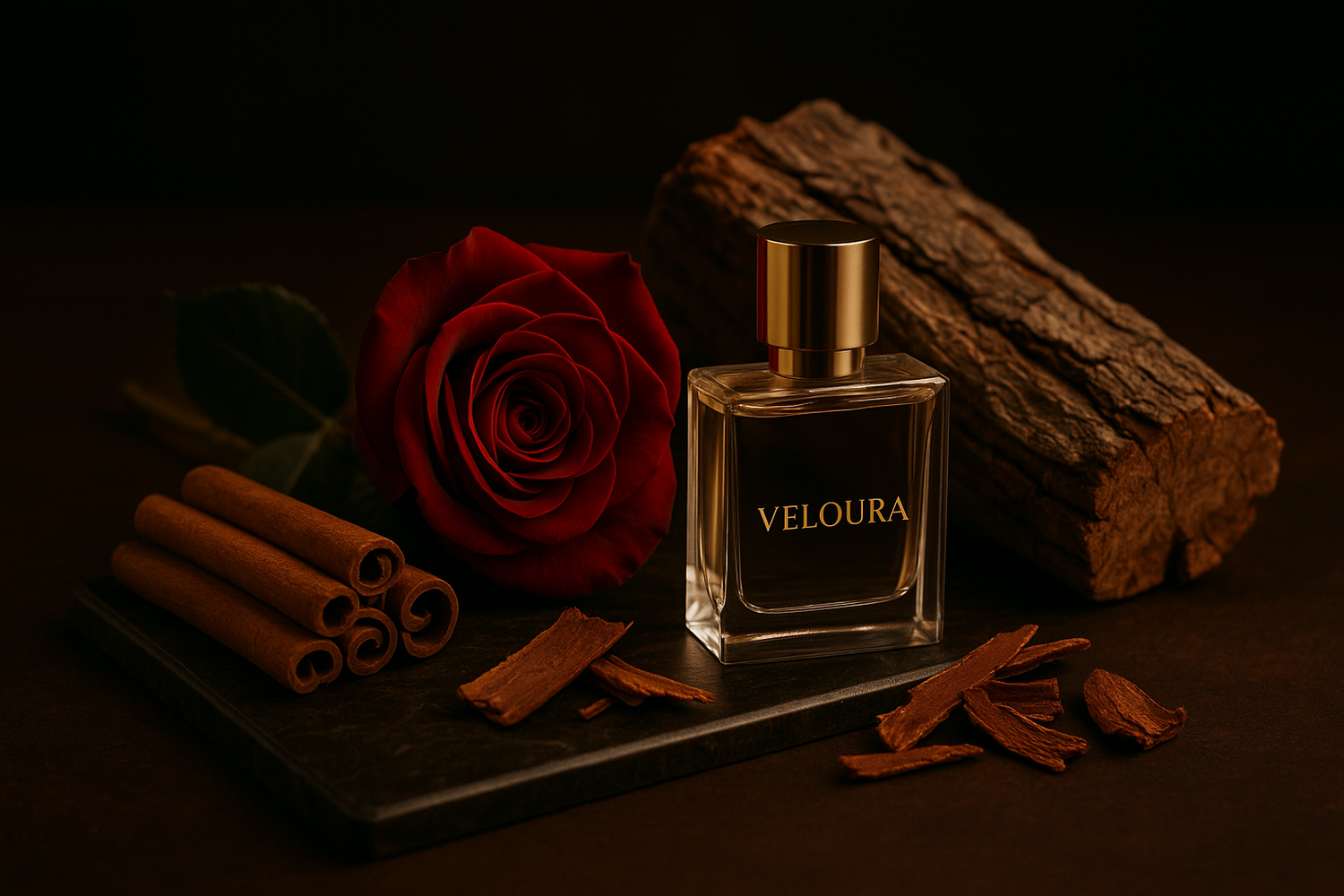 Veloura captures the soul of sophistication with an intoxicating blend of fragrant rose, warm cinnamon, and rich woody notes. A fragrance born from passion and crafted for those who embrace true luxury, it unveils a sensual harmony that lingers long after the moment has passed. Each drop is a journey — bold, refined, unforgettable.